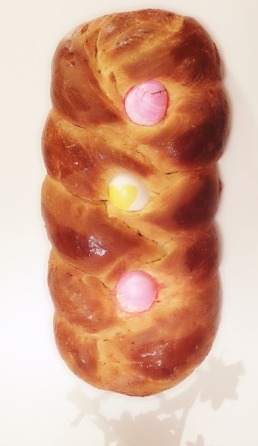 ReplyDeleteI made it yesterday-like every year- even I´m alone with dad beeing alraedy in the summerhome in KROATIA.Unstaed of brading the dough I did a big loaf and cutted it kiriss-kross-wise in the middle without the eggs in the center.