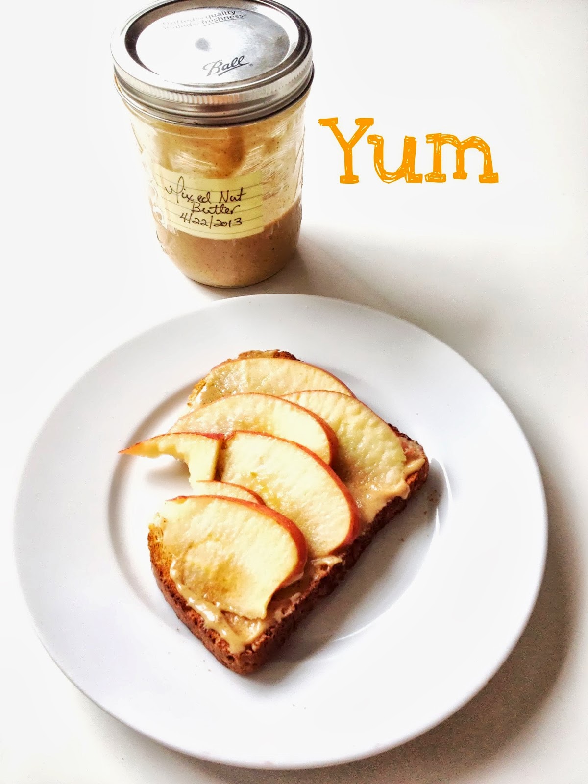my friend makes this amazing all natural "nut butter" with her new vitamix*, that i can't get enough of. one of my favorites is nut butter on toast [ multigrain with sunflower seeds] with slices of apple or banana. it makes for a great post yoga snack full of protein, natural sugars and fibers.